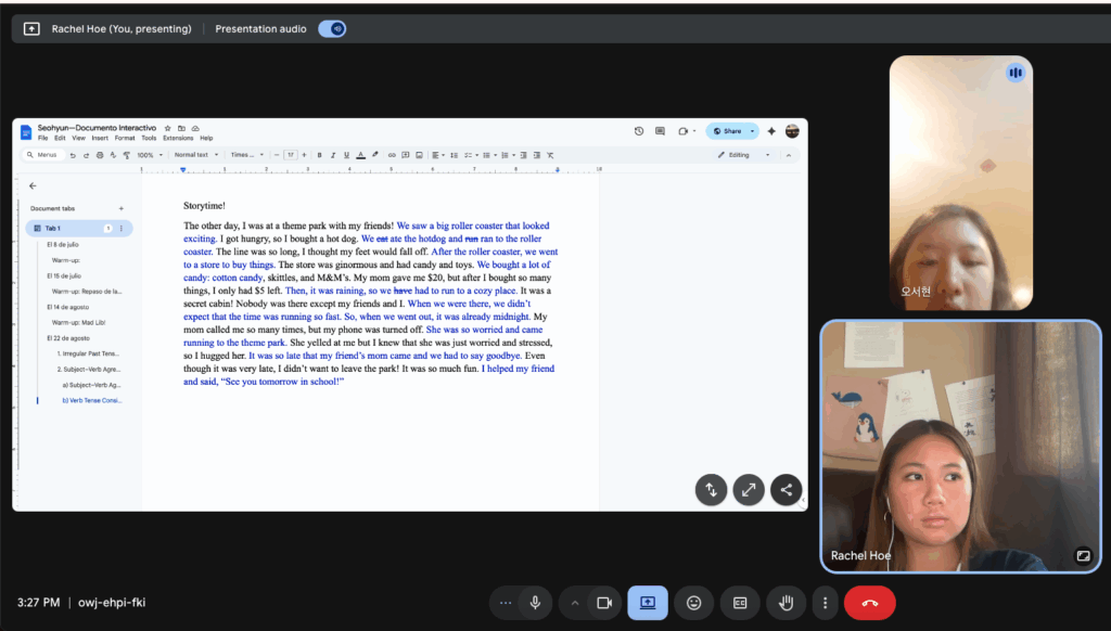 July 15, 2025. Rachel just completed a lesson with her tutee, Seohyun.